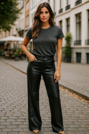 Lederlook wide leg