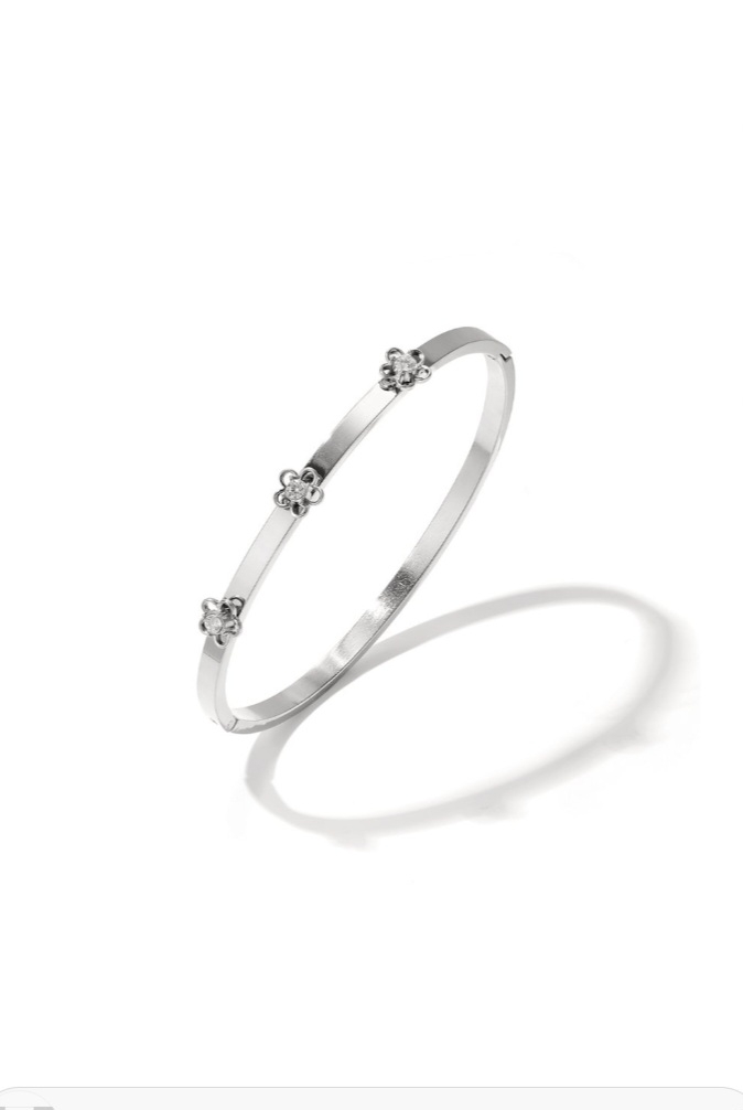 Deze gave roestvrije staal bangel armband met bloemdetail en rhinestone wil jij toch ook in jou sieraden collectie