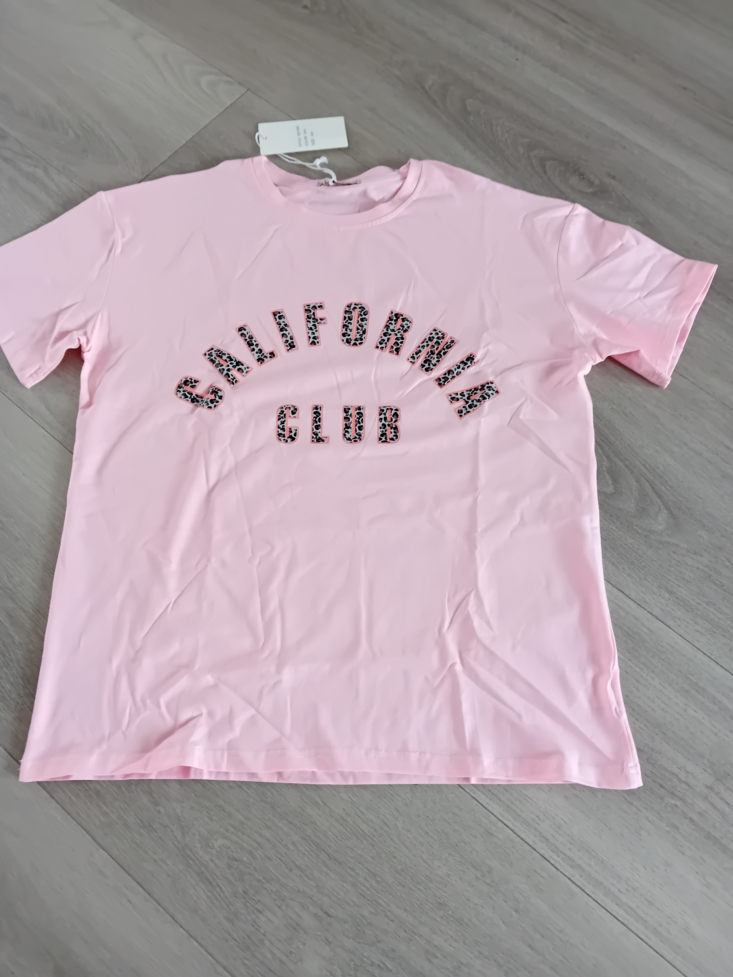 Trendy pinkrose T-shirt van Ciao Milano met stijlvolle California Club opdruk in leopard print en donkerroze omlijning. Een echte eyecatcher die perfect te combineren is met een jeans of short voor een fashionable casual look.