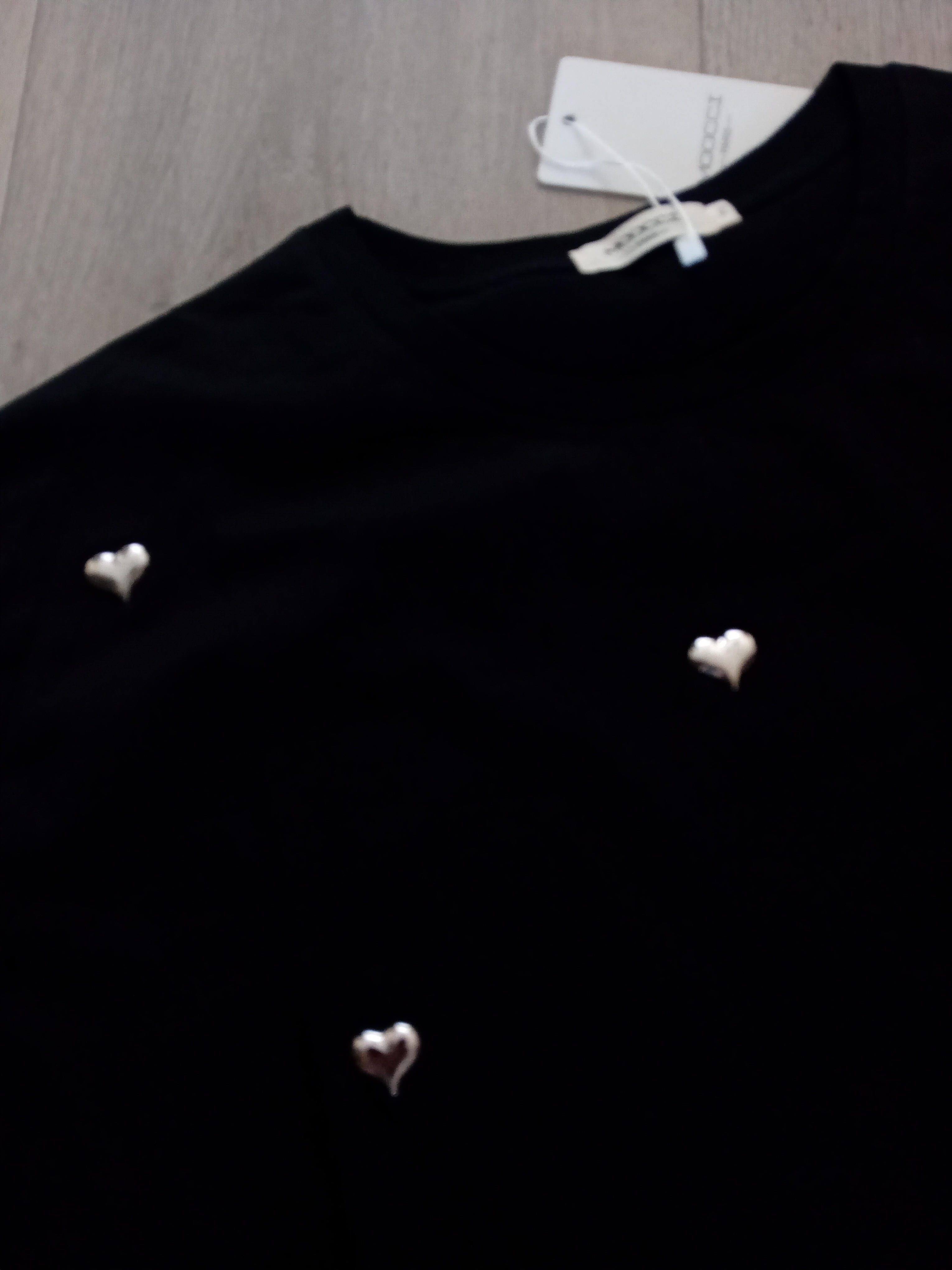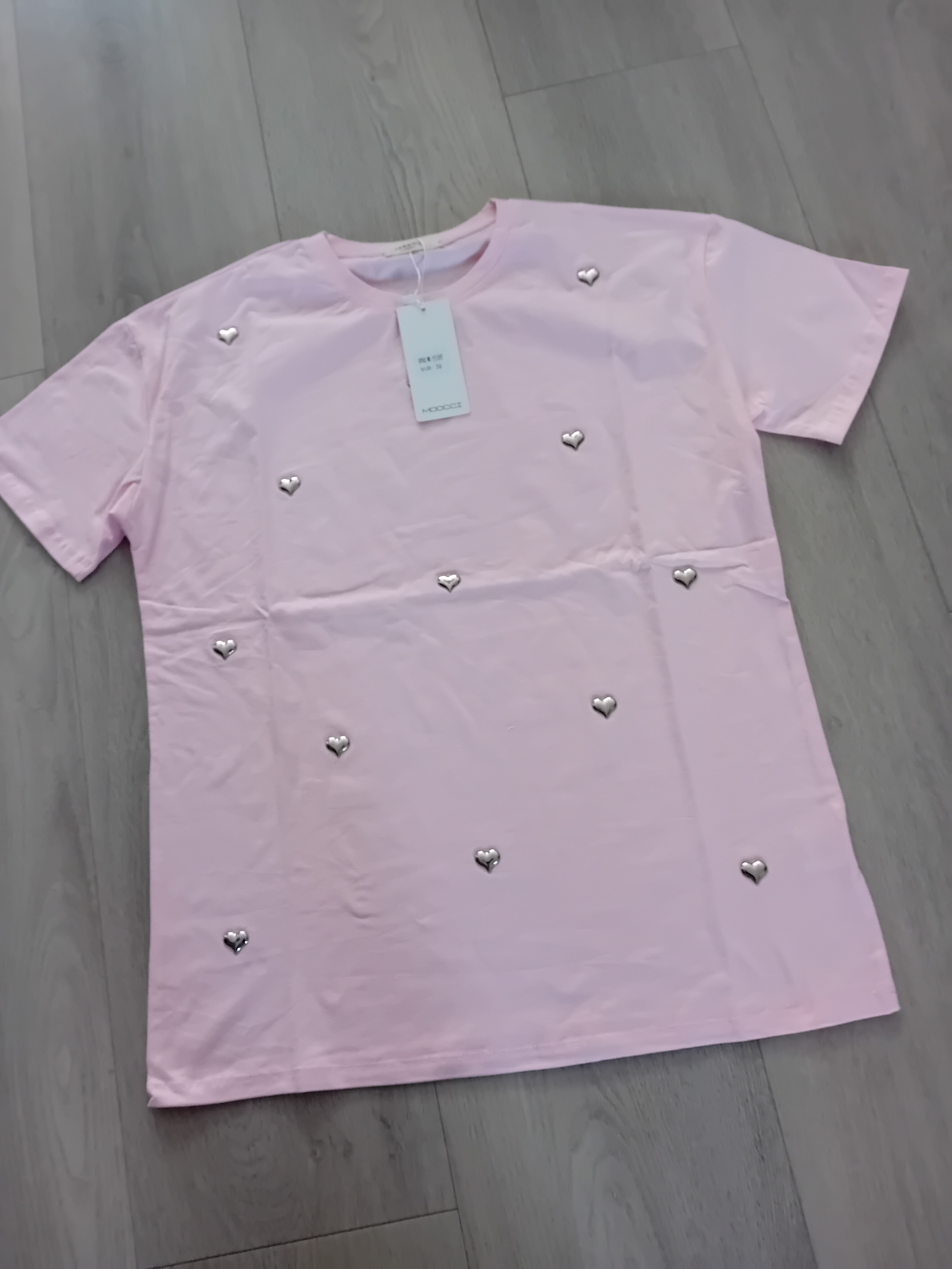 Mooi oversized shirt met zilverkleurige metalen hartjes all over verkrijgbaar in rose en zwart Merk moocci