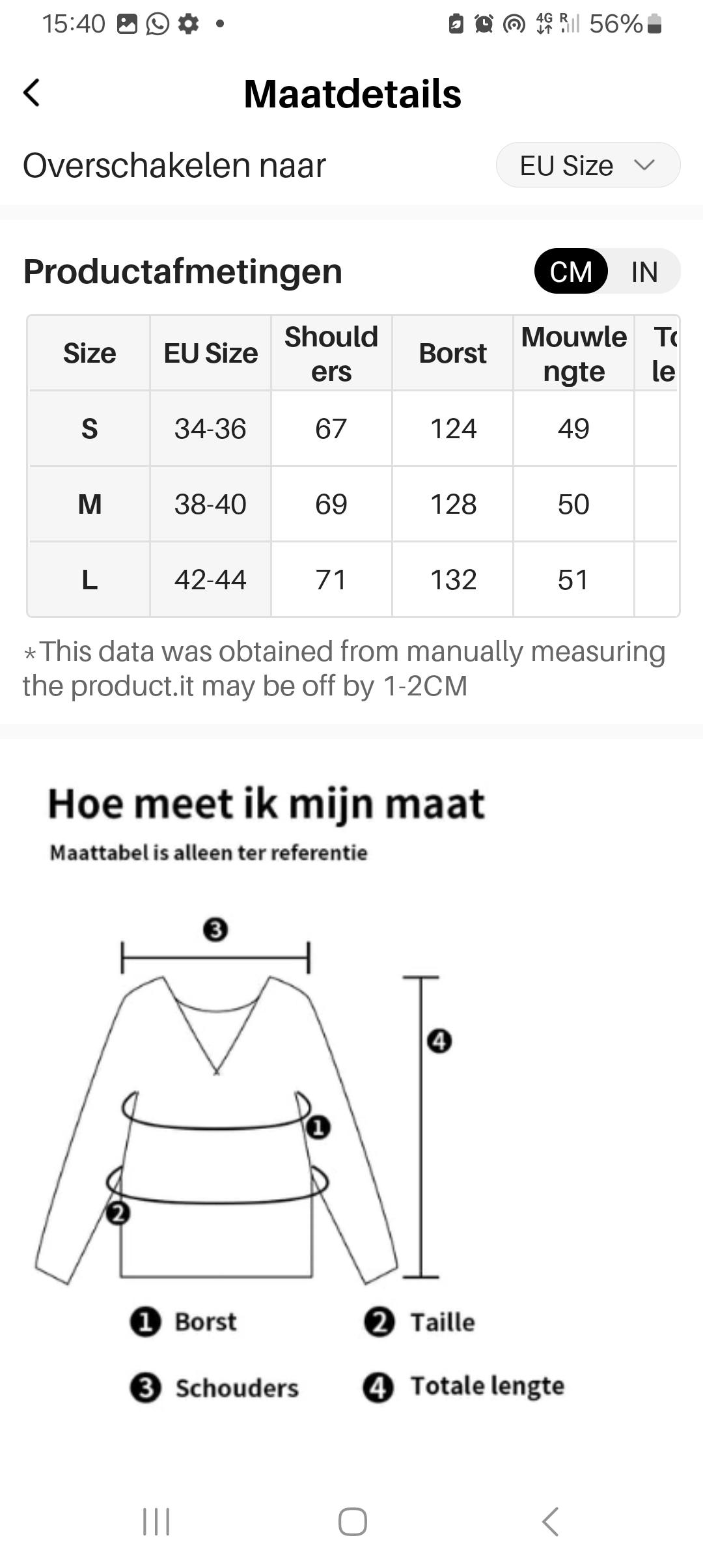 Verkrijgbaar in maat S -M-L